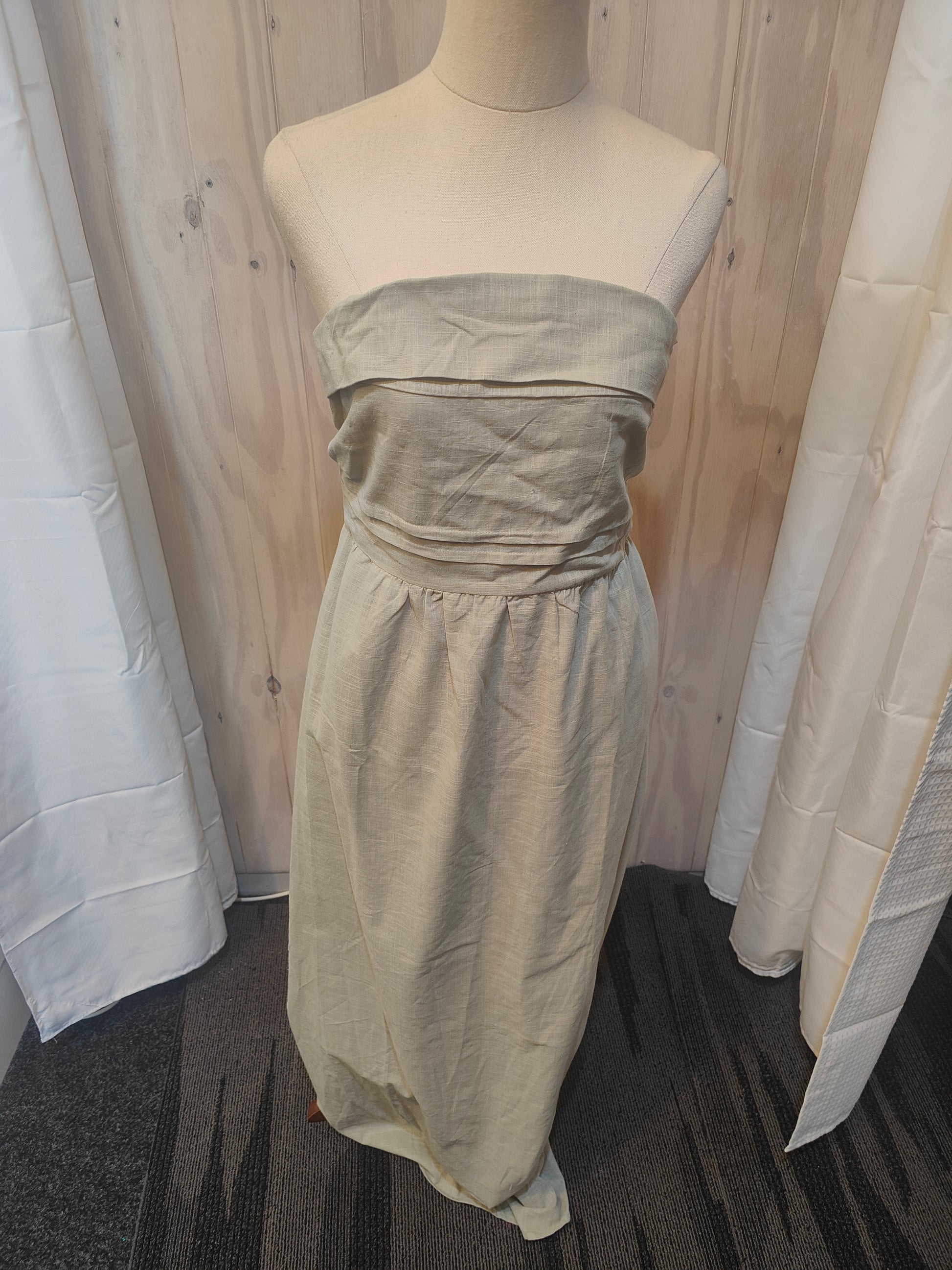 Breezy and lightweight this sage green linen strapless dress is your go-to for easy elegance.