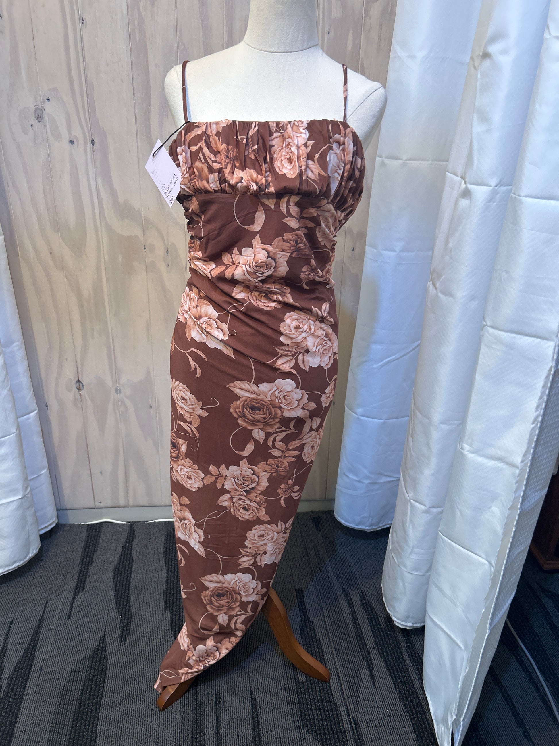 The soft floral print on warm brown tones brings a perfect mix of romantic and modern vibes.